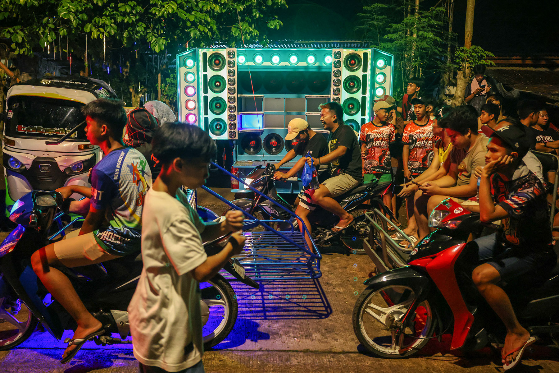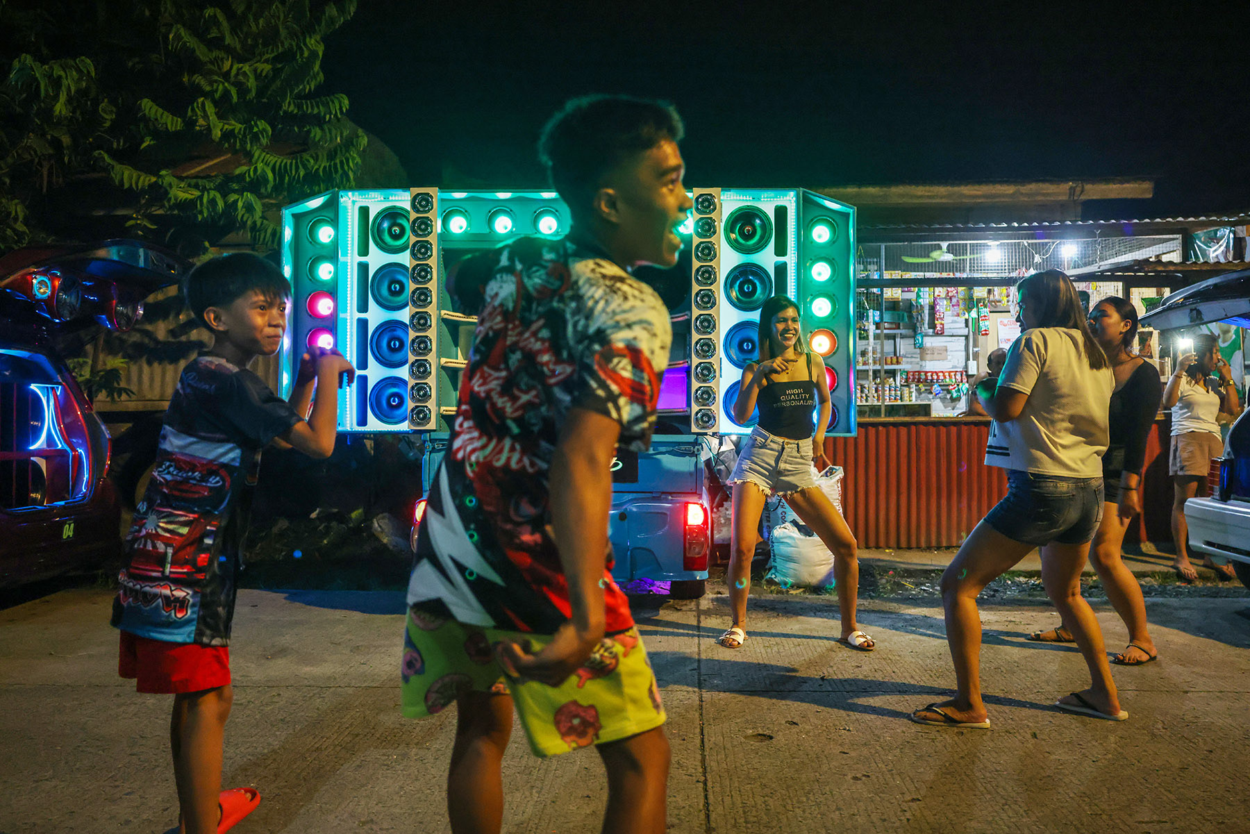 On the outskirts of Davao, Jason Lordan parks his pastel blue van with oversized speakers for a fiesta (neighborhood party). The man, who installs sound and lighting systems in cars and tricycles as a hobby, swings open his rear doors and, with the push of a button, transforms a dark street into a nightclub with 130 decibels of techno music and pulsating lights. Much to the delight of the residents, who gather swaying their hips for an evening of budots techno: teenage girls in tight tops, fathers bare-chested, grandmothers holding hands with toddlers.