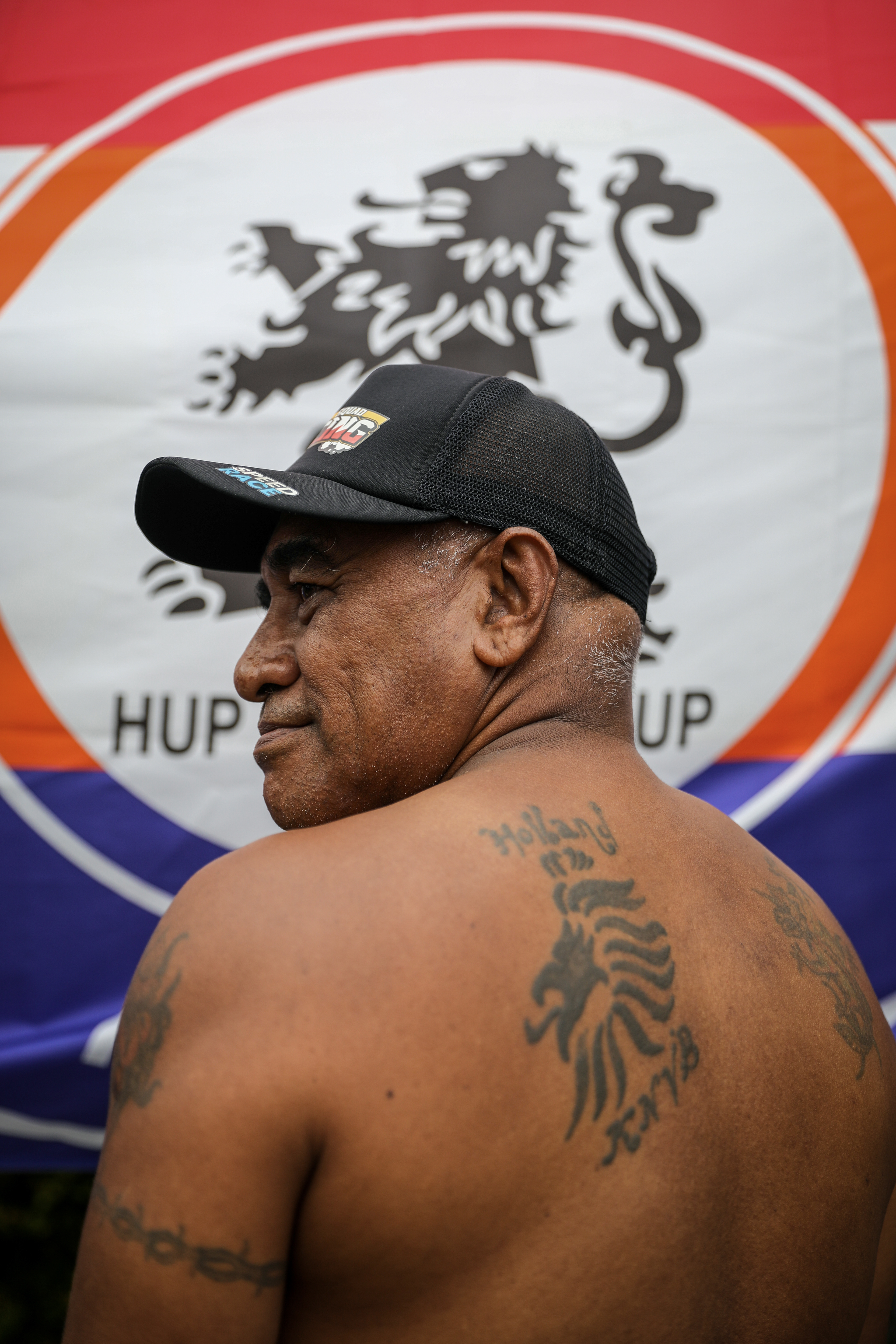 In the "Taman Belanda" dozens of Dutch flags fluttered and a giant flag 40 meters long was unfurled. Senior supporter, David Marthen shows the KNVB tattoo on his left back. Meanwhile, the group leader, Angel Sahetapy, put up a large Dutch flag on the front wall of her house.