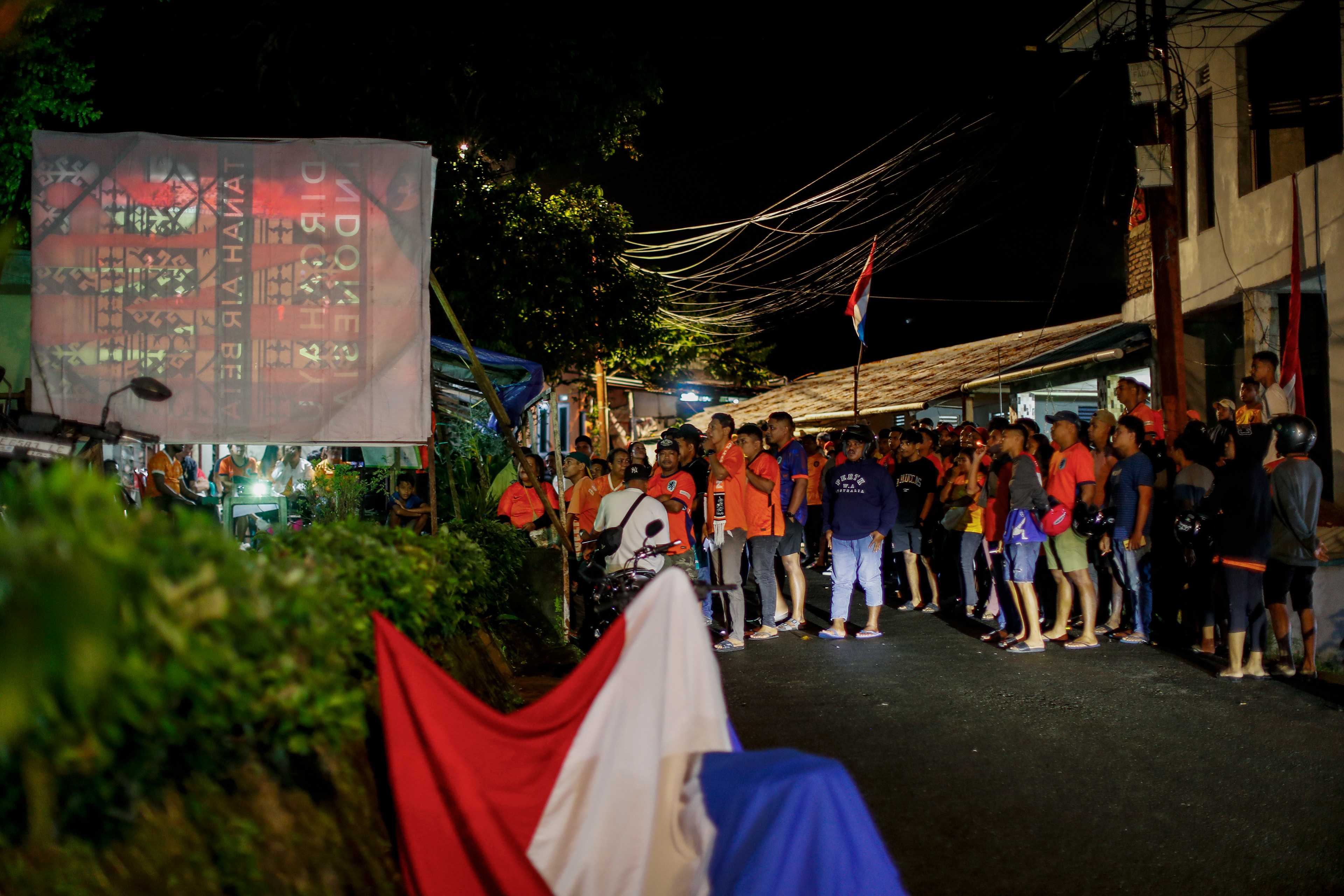 At 4 am, a flare was lit when the Dutch national anthem was played in the EURO 2024 semi-final match in the working-class district of Batu Meja in Indonesian Ambon City.